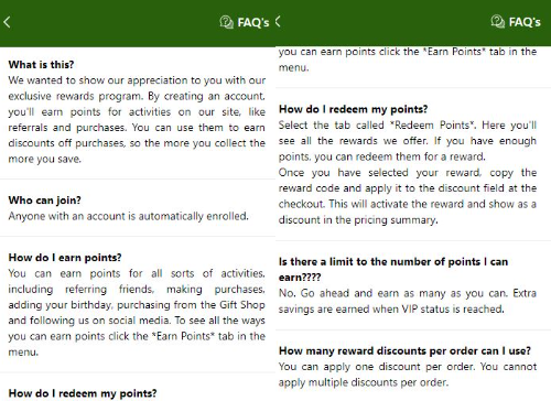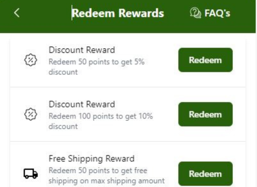 The "Ways to Earn" section offers details on how you can earn rewards. You can easily achieve a 5% or 10% discount just for signing up. You also receive 1 point for each dollar spent. The rewards v's dollars spent ratio is designed to enable you to regularly achieve discounts for regularly shopping with us.