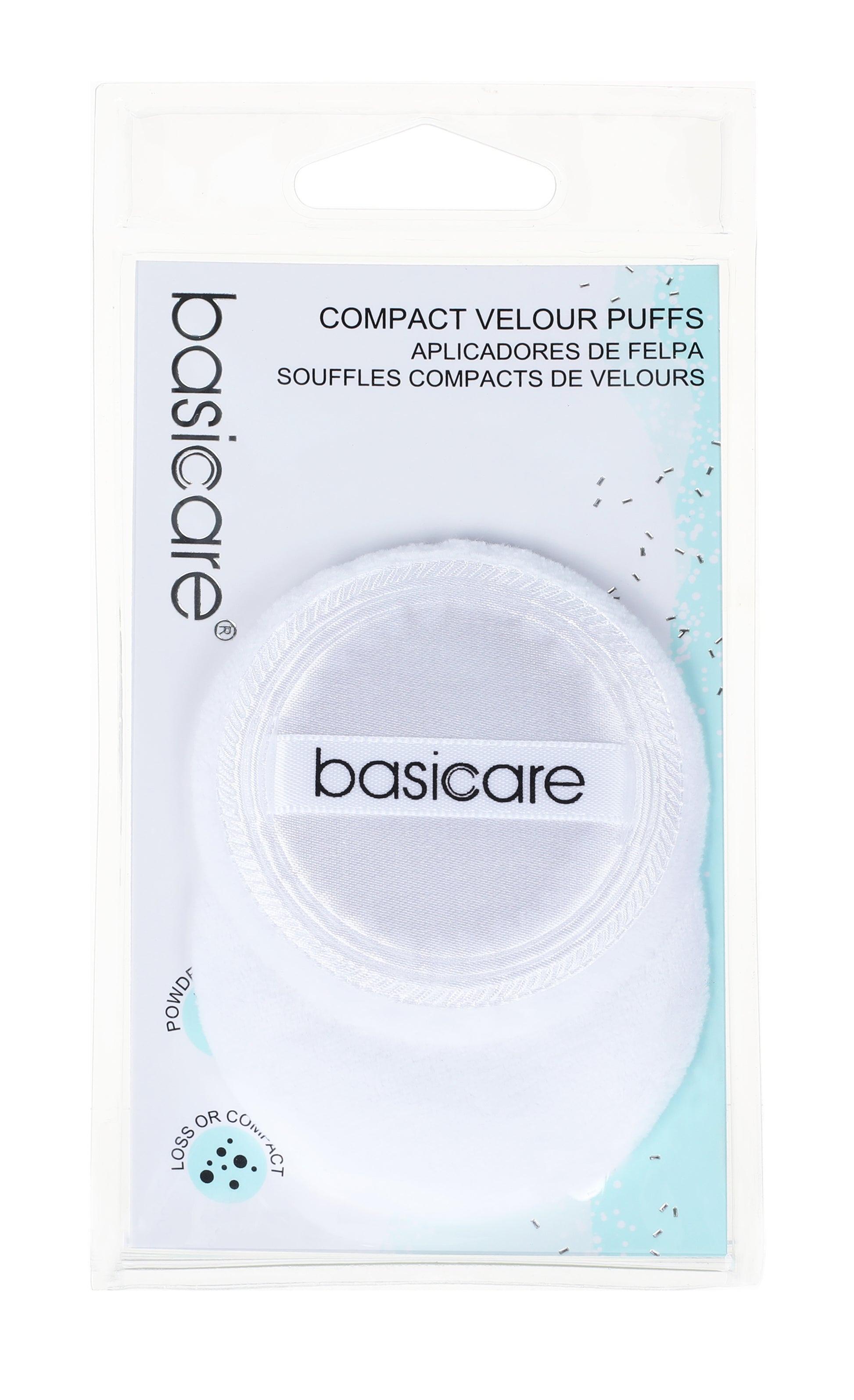 Use velour puff to pick up powder. Pat and blot against skin. Dust off excess.