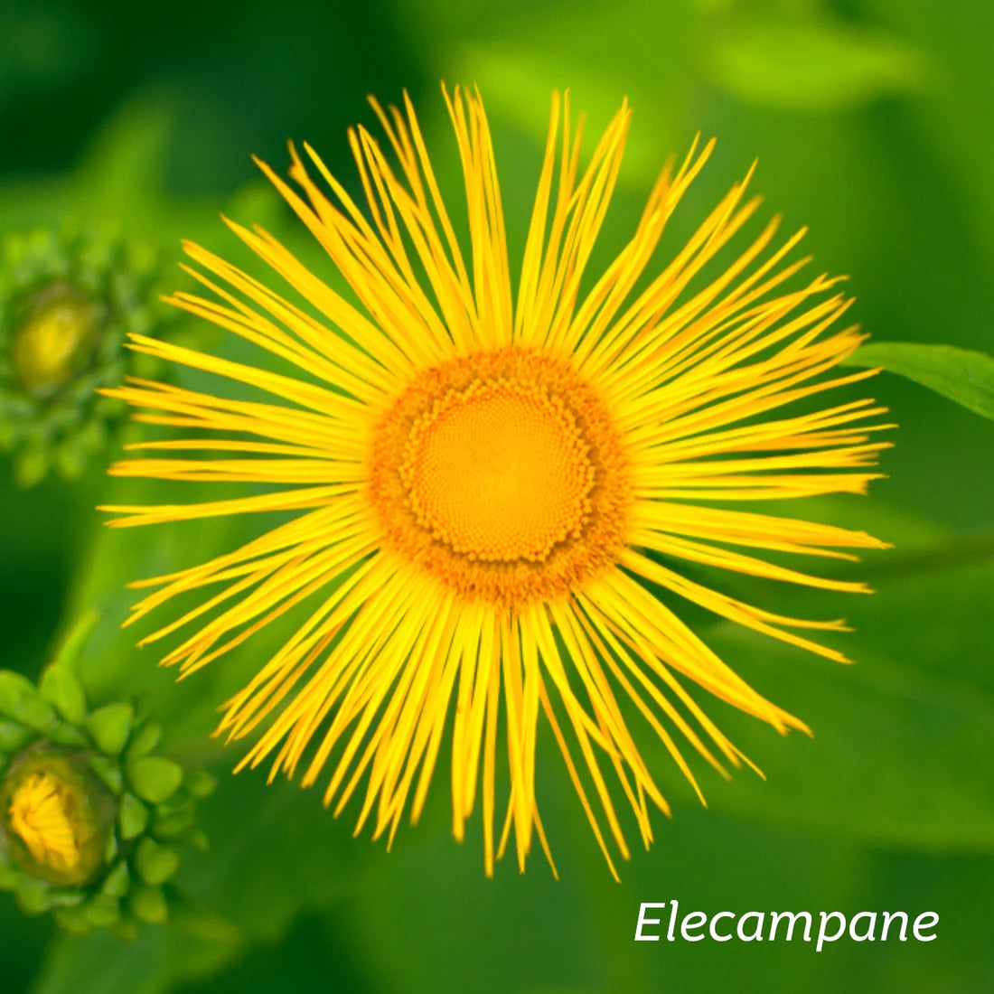 Elecampane – A potent expectorant which helps with mucus clearance and supports recovery of ongoing bronchial issues.