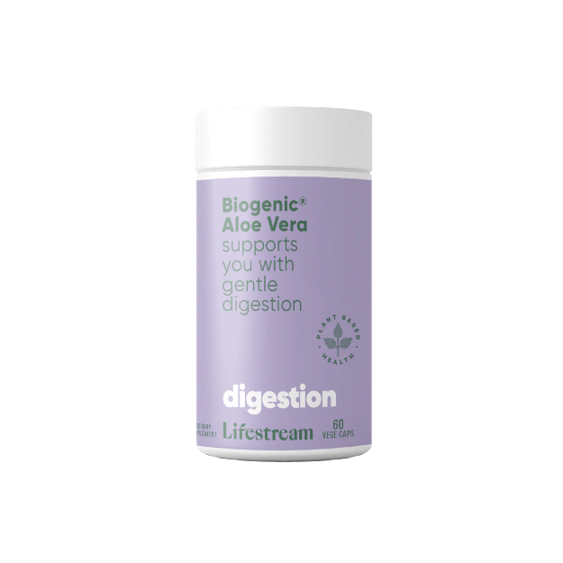 Lifestream?s Biogenic Aloe Vera capsules contain premium quality Aloe Vera powder from the ?inner gel? of the freshly cut Aloe Vera plant which can aid in soothing the lining of the stomach and intestines to support smooth and natural digestion. Taking 2 of these daily, on an empty stomach, will give you the support you need for improved digestive health.