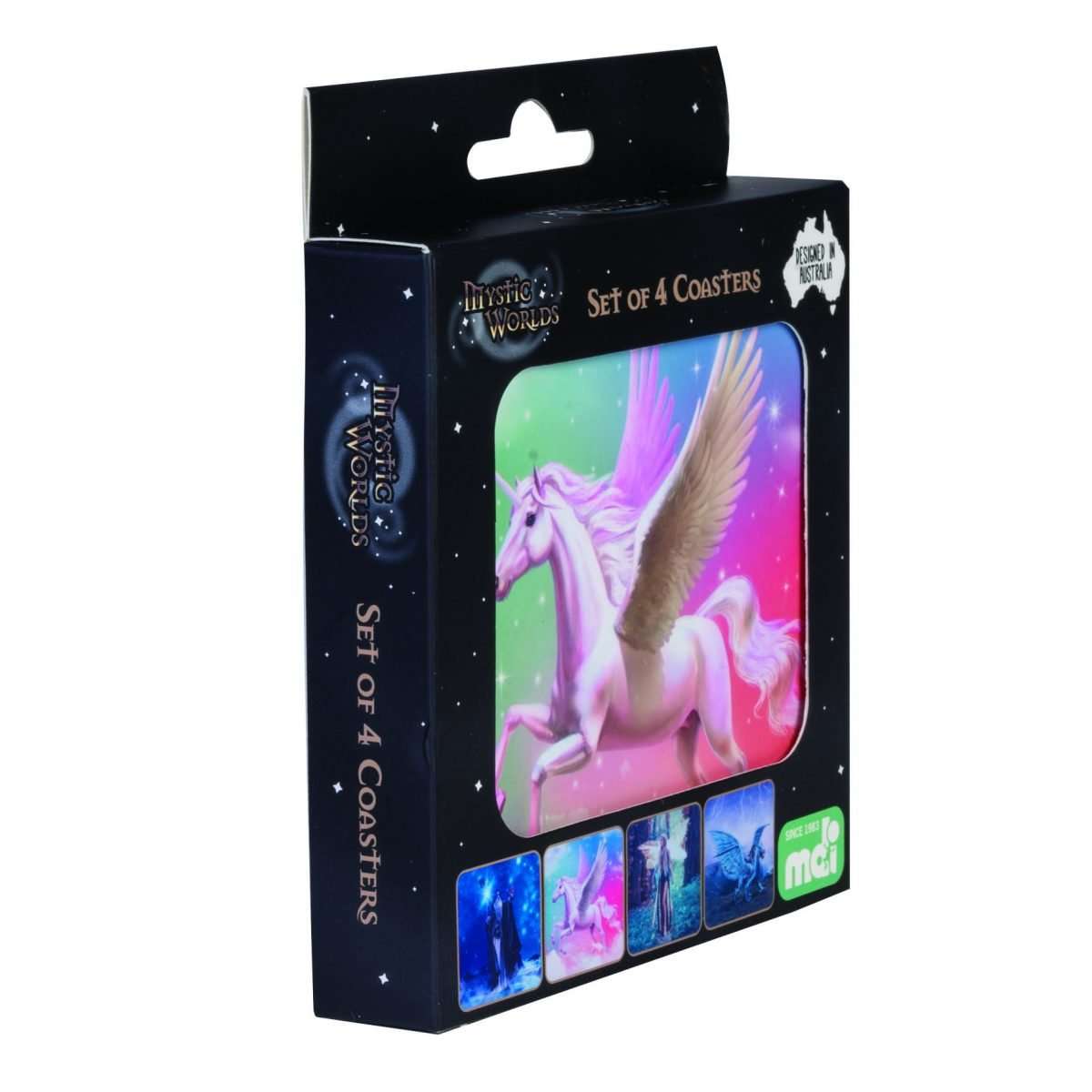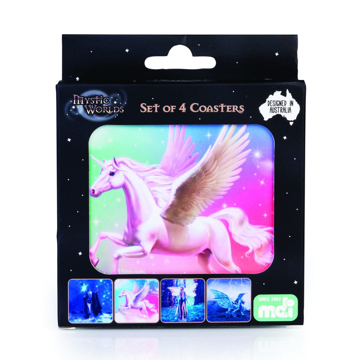- Set of 4 enchanting coasters each depicting their own mystical scene